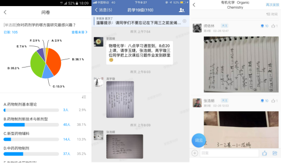 自接到学校有关疫情防控期间教学工作实施方案以来,药学系全体教师以高度责任感和使命感积极做好线上教学的各种准备工作,以饱满的工作热情和良好的精神风貌保证了2月17日国家教育部倡议的“停课不停学”的顺利开展。为保证确保教学质量,药学系教学督导委员从3月9日开始采用分组形式入驻各门课程的学习通平台以及其他教学平台如微信、QQ、企业微信群等,持续不断地展开了网络教学督导工作。